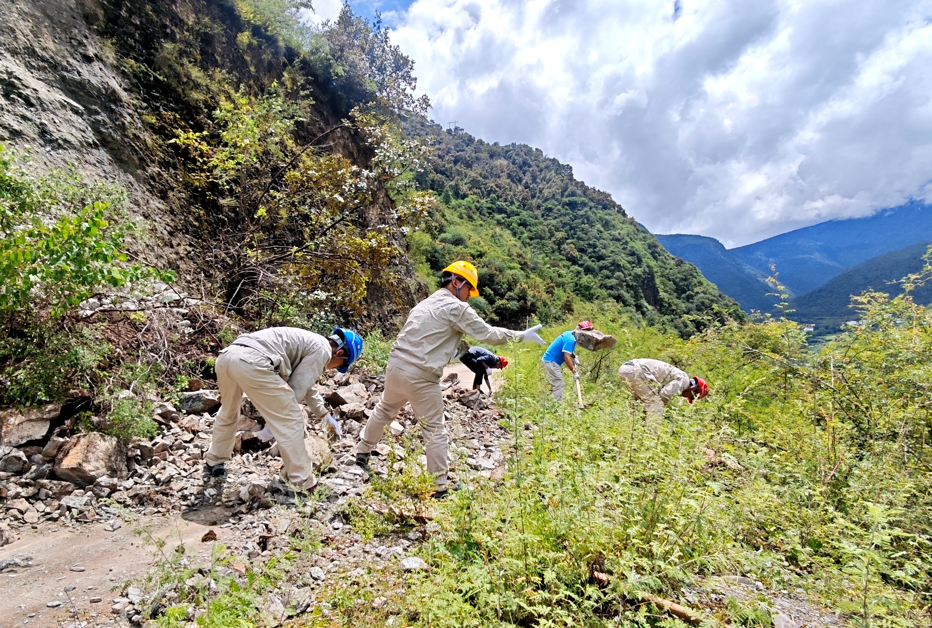 然而,,,,,,在距离市区九十多公里的深山里,,,,,,滇西新能源事业部岗曲河一级水电厂——迪庆州地区电力供应的主要组成部分,,,,,,正面临严肃磨练。。。。。。。今年8月,,,,,,一连降雨引发多处山体滑坡与落石,,,,,,阻断了一条要害通道——从生涯营地通往大坝的唯一蹊径,,,,,,岗一水电厂一时间成为了‘孤岛’。。。。。。。雨后边坡不稳,,,,,,机械装备难以进场,,,,,,电厂的生产与生涯秩序受到严重威胁。。。。。。。
